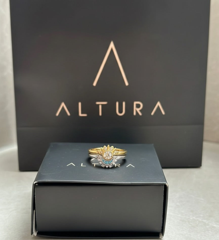 Porque tu historia merece algo tan único como su conexión, y en ALTURA la sellamos con nuestros anillos sol y luna.