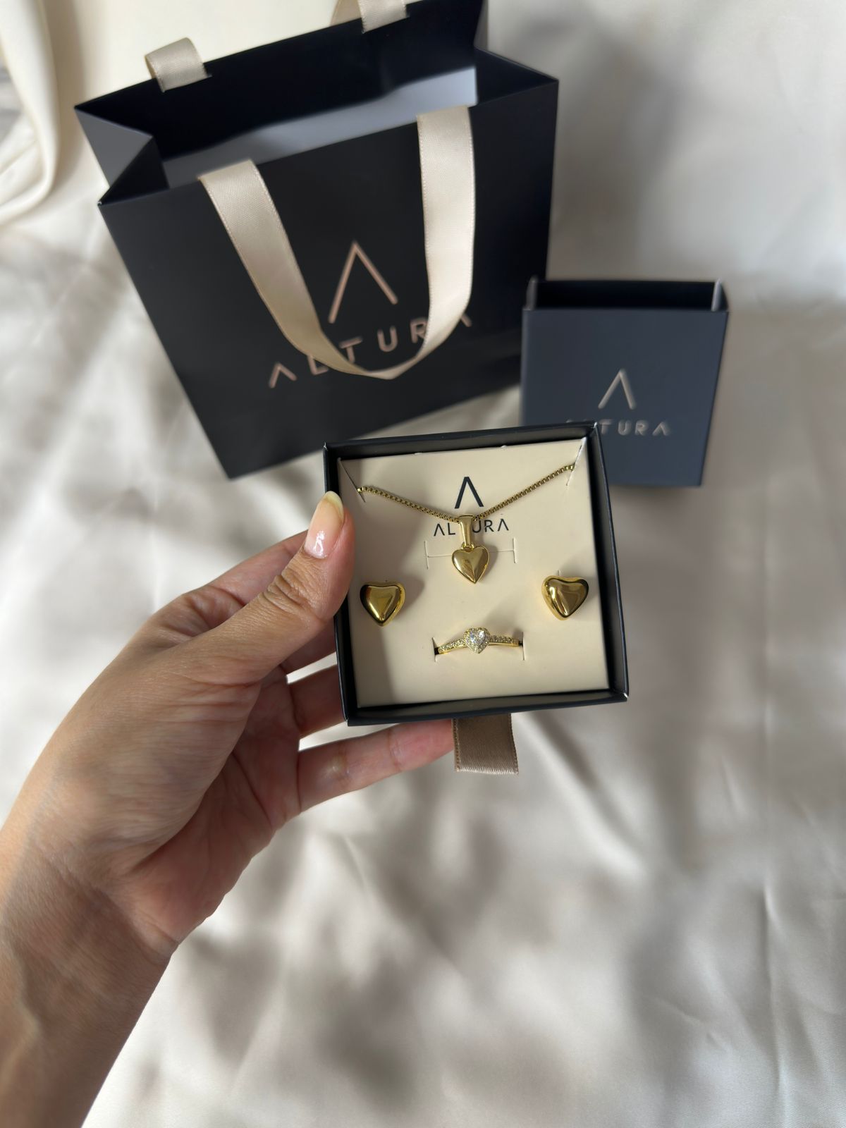 “Sorpréndela como se merece. Este exclusivo set de collar, aretes y anillo de corazones está disponible únicamente en ALTURA… porque los regalos más especiales no se encuentran en cualquier lugar.” 💎💘